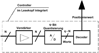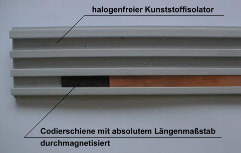 Logik, der die Position über die Schnittstelle an die steuernde Einheit weitergibt. Die Lineargeberschiene wird